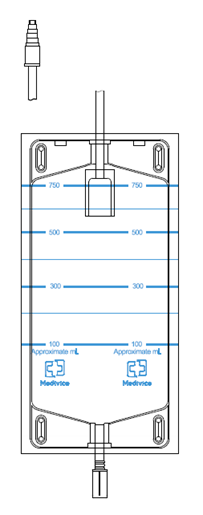Мешок объемом 750 мл из прозрачного ПВХ с градуировкой в миллилитрах, приводной трубкой длиной 350 мм, который заканчивается универсальным коннектором с крышкой типа «елочка», что способствует присоединению к любым урологическим катетерам, а также наружным мужским катетерам (уропрезервативам).
